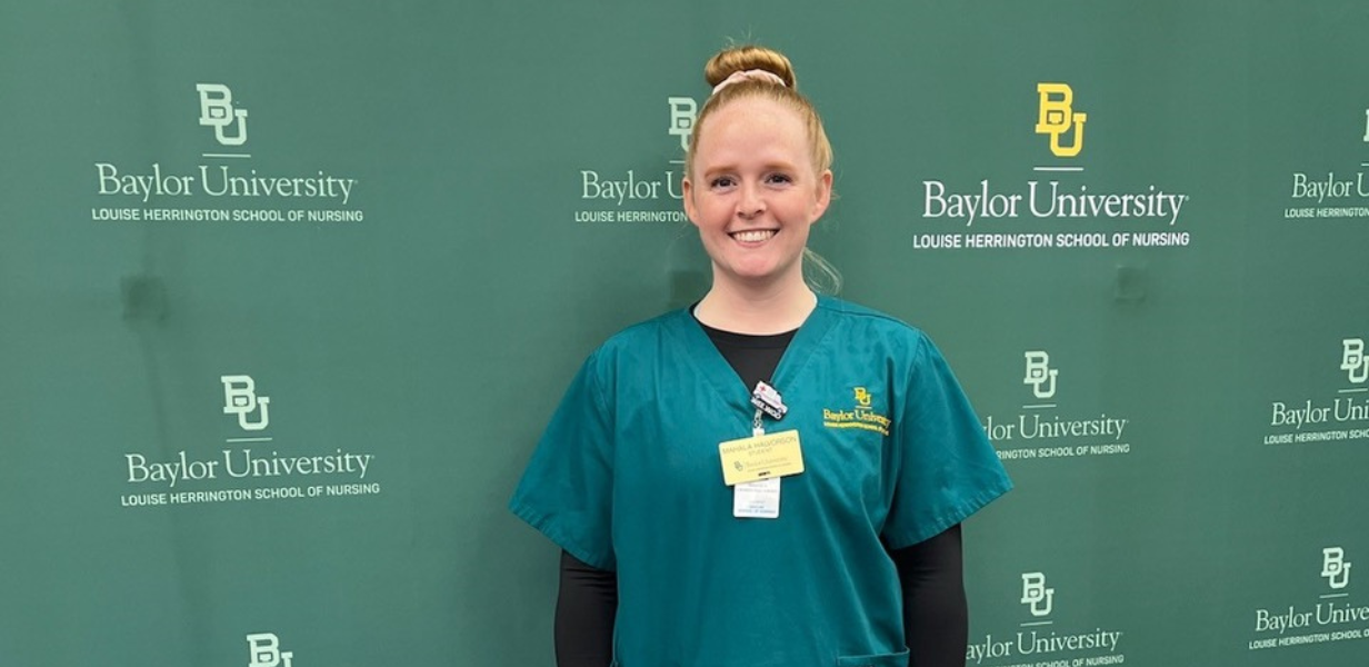 Mahala Griffin-Halvorson, nursing student at Baylor, gave birth to her son, Hudson, 13 weeks early, while her husband, Caleb, was in the hospital from serious injuries fighting a fire.