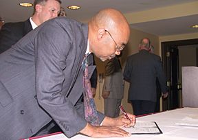 Houston pastor John Ogletree, chairman of the BGCT Executive Board and a member of the WorldConneX board, signs the official articles of incorporation for the new missions entity. Missions network is WorldConneX;