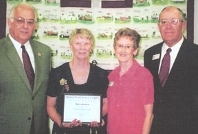 BGCT Executive Director Charles Wade presents a plaque to E.B. Brooks, retiring coordinator of church missions and evangelism, at a recent BGCT Executive Board meeting. (Photo by John Hall) Brooks retires after 27 years with BGCT