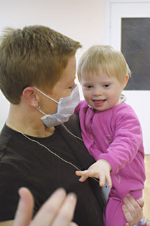 | Volunteer Lisa Williams of Louisiana, an internationally adoptive mother, shares a moment with a toddler with Down syndrome. (Photo by Felicia Fuller) |