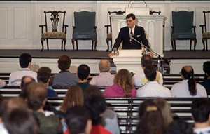 The room was tense. More than a few students, not least the women who had come to the seminary to train to be pastors, were unhappy the board of trustees had elected Mohler. The 33-year-old editor of a Georgia Baptist paper had no experience running any educational institution, never mind a school with nearly 2,000 students.