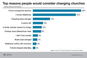 Researchers asked about other factors that might cause churchgoers to switch churches. Nearly half (48 percent) would change churches if the churchgoer moved to a new home.