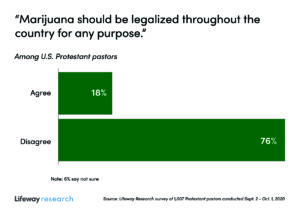 “Cultural stigmas around smoking a joint have diminished, but most pastors still say it crosses a moral line,” McConnell said. “While some may connect this prohibition to state laws that still forbid this use, it is clear from their views on legalization that pastors see moral problems with getting high beyond simply disobeying government authorities.”