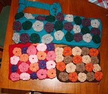 In an effort to provide economic development and enrichment for the women, Vasquez started a group that knit various products including doilies and handbags, using brightly colored yarns and knitted floral decorations as well.