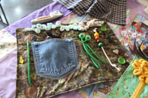 What do googly eyes, fuzzy yarns, zippers without openings and little stuffed animals poking out of pockets have in common? They are just a few of the items one would find garnishing fidget quilts designed by women in sewing rooms at Christian campgrounds.