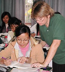 Levesque has been pleased to discover that some university students also attend the free English language classes she teaches at Gong He Lu Church. Although her university teaching contract prohibits her from teaching religion in a campus classroom, Chinese law assures the freedom to discuss religion within a government registered church or meeting place.