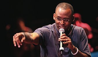 Gordon Banks, former Dallas Cowboys wide receiver and current senior pastor of New Heart Worship Center in Auburn, Wash., calls people to Christ during the BGCT Youth Evangelism Conference.